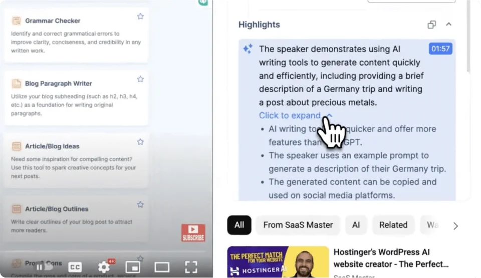With this extension, you can have a swift recap of an entire YouTube video with just one click. Transform your video-viewing experience today!